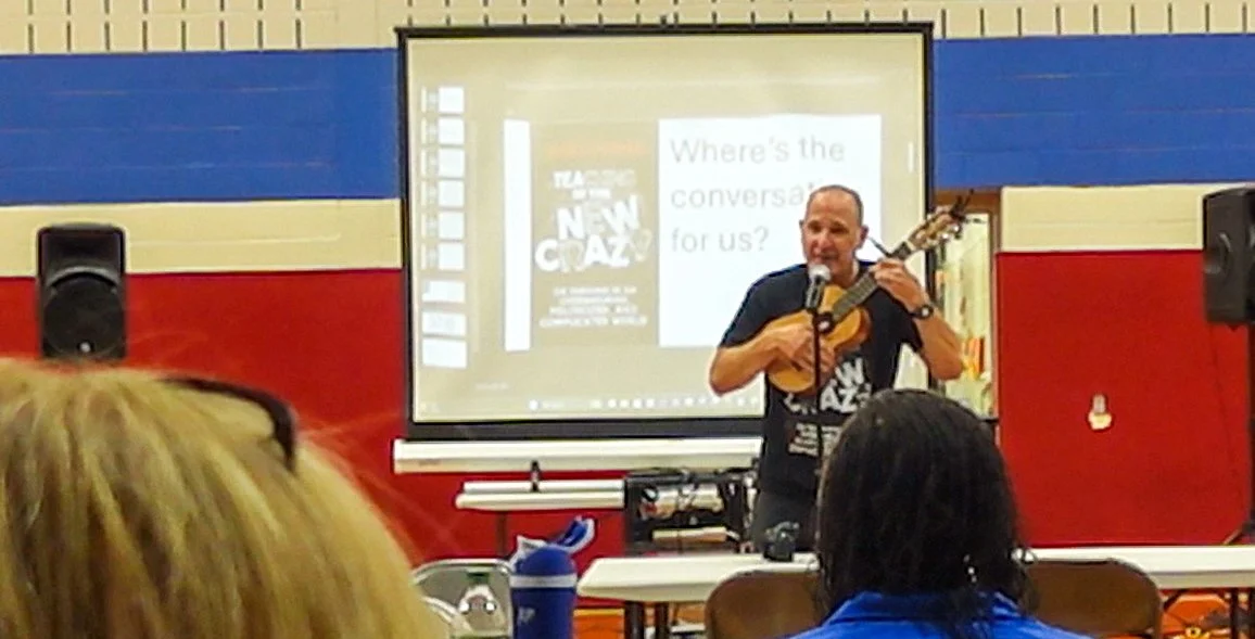 Now I’m focused on facilitating conversations with teachers and concerned citizens on how to teach (or do anything) in our chaotic new normal. As a social studies teacher of 28 years, I know this present moment is unique. Exponential technological growth, deepening polarization, and worsening mental health – in addition to other challenges — make this moment disruptive. We need each other – no matter our political views — to thrive in our new normal. That’s why I wrote my new book, Teaching in The New Crazy: On Thriving in an Overwhelming, Politicized, and Complicated World.